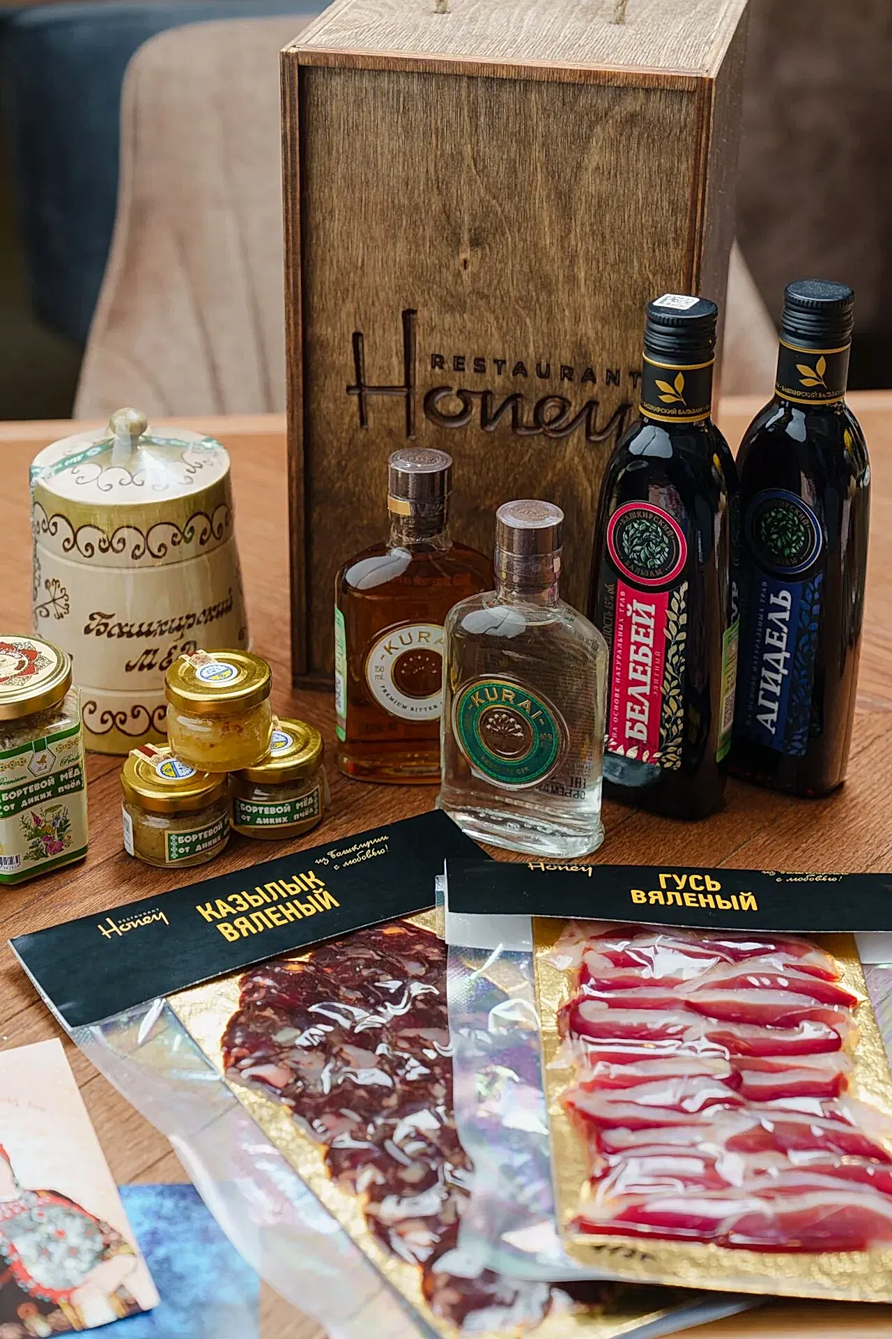 В нашем ресторане Вы сможете приобрести, как национальные деликатесы, мёд, сладости, башкирский чай, так и памятную сувенирную Pin-Up магниты, открытки, одежду локальных брендов.